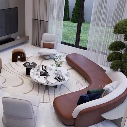 حوّلِ مساحة جلوسك إلى ملاذ من الفخامة والراحة مع غرف الجلوس المصممة لتوفير تجربة استرخاء لا مثيل لها. نقدم لكِ تصاميم متنوعة تجمع بين الأناقة الكلاسيكية والعصرية، مع قطع أثاث مصنوعة من أفخم الخامات مثل الجلد الطبيعي، والمخمل الفاخر، والخشب المعالج، لتضمن لكِ الجمال والمتانة في كل زاوية. مع الأرائك الفسيحة، والكراسي المريحة، والطاولات الأنيقة، توفر لكِ غرف الجلوس لدينا بيئة مثالية للتجمعات العائلية أو لاستقبال الضيوف. ولأننا نهتم بكل تفاصيل المكان، تأتي الغرف بألوان متناسقة وتشطيبات رائعة، بحيث يمكنكِ تخصيص الألوان والتصاميم لتتناسب مع ذوقك الشخصي وتُضفي طابعًا خاصًا على منزلك.